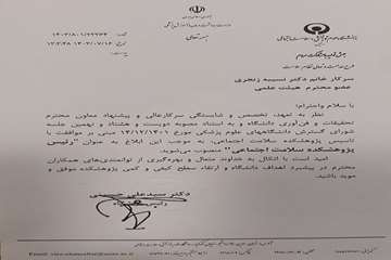 متن ابلاغ دکتر فرهادی به این شرح است:نظر به تعهد، تخصص و شایستگی سرکارعالی و به پیشنهاد معاون محترم تحقیقات و فناوری دانشگاه و به استناد مصوبه دویست هشتاد و نهمین جلسه شورای گسترش دانشگاه های علوم پزشکی مورخ 1401.12.14 مبنی بر موافقت با تاسیس پژوهشکده سلامت اجتماعی،به موجب این ابلاغ به عنوان " رئیس پژوهشکده سلامت اجتماعی"منصوب می شوید.امید است با اتکال به خداوند متعال و بهره گیری از توانمندی های همکاران در پیشبرد اهداف دانشگاه و ارتقاء سطح کیفی و کمی پژوهشکده موفق و موید باشید.دکتر سیدعلی حسینیرئیس دانشگاه